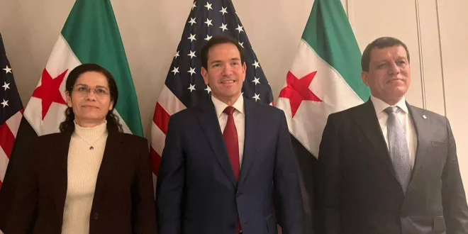 وقال المركز الإعلامي لقوّات سوريا الديمقراطية، في بيان : “اللقاء الذي جمع الوفد السوري، وروبيو، والرئيسة المشتركة لدائرة العلاقات الخارجية في الإدارة الذاتية، إلهام أحمد، عقد في مدينة ميونيخ بألمانيا”.