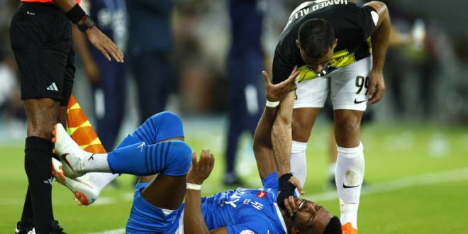 فعند الدقيقة 44 من زمن المباراة، أعاق مهاجم “النمور” مدافع “الأزرق الهلالي”، ثمّ توجّه حمد الله نحو البليهي، وحينها ظهر أن الأخير قام بضرب اللاعب المغربي على وجهه ليسقط أرضاً.