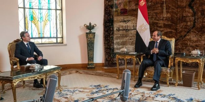 – استقبل الرئيس المصري، عبدالفتاح السيسي، الأحد، وزير الخارجية الأمريكي، أنتوني بلينكن في القاهرة، ضمن جولته التي شملت إسرائيل والأردن والسعودية والإمارات وقطر والبحرين، لبحث تطورات التصعيد العسكري في غزة.