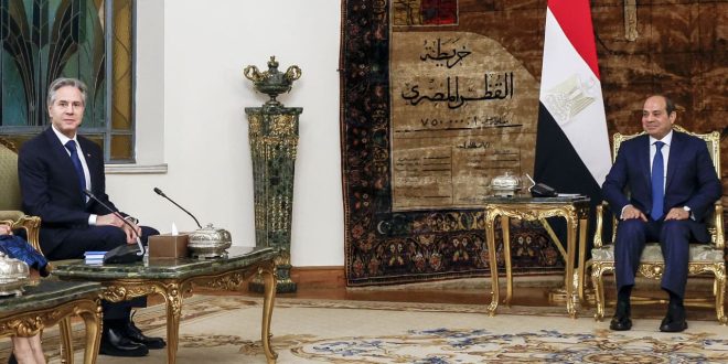 بحث الرئيس المصري عبدالفتاح السيسي، مع وزير الخارجية الأمريكي، أنتوني بلينكن، الأوضاع الإقليمية وخاصة في قطاع غ-زة والأراضي الفلسطينية، والجهود المصرية للتواصل مع كافة الأطراف بهدف الوصول إلى وقف فوري لإطلاق النار في القطاع، بحسب بيان للرئاسة المصرية.