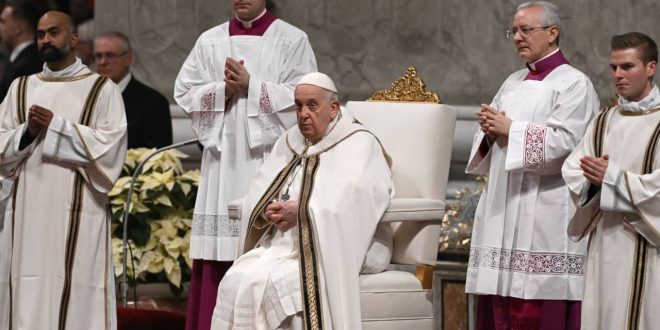وشدد البابا، الذي دعا مرارًا وتكرارًا إلى وقف إطلاق النار في الحرب بين إسر-ائيل وح-م.ا-س، الليلة على أن ميلاد المسيح قدّم تناقضًا صارخًا مع “قوة العالم” والرغبة في “القوة والشهرة والمجد”.