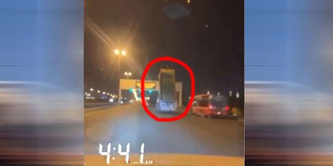 تداول نشطاء على مواقع التواصل الاجتماعي مقاطع فيديو تظهر فيها شاحنة حوضها مرفوع تسير على طريق في الكويت قبل الاصطدام بلوحة إرشادية على الطريق الأمر الذي أثار تفاعلا.