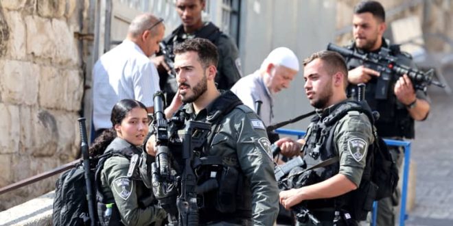 وأغلقت مجموعة من ضباط الشرطة المدججين بالسلاح مدخل مجمع المسجد الأقصى، القريب من باب الأسباط في المدينة، وقاموا في بعض الأحيان بدفع الناس بعيدا بالقوة باستخدام الهراوات.