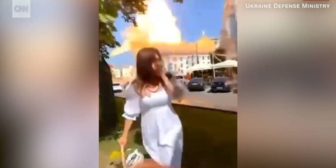 تداول نشطاء على مواقع التواصل الاجتماعي مقطع فيديو يظهر لحظة انفجار صاروخ خلف فتاة كانت تأخذ صورا في شمال أوكرانيا الأمر الذي أثار تفاعلا.
