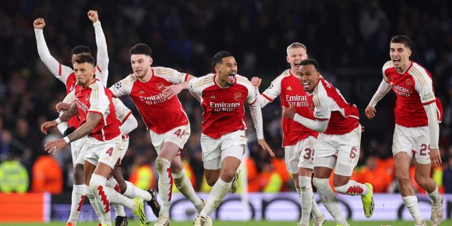تفوق نادي أرسنال الإنجليزي ، على منافسه بورتو البرتغالي، بركلات الترجيح بنتيجة 2/4، عقب تعادل الفريقان في مجموع مباراتي الذهاب والإياب بهدف لمثله، ضمن منافسات دور الـ 16 في دوري أبطال أوروبا.