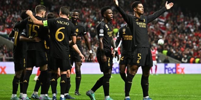 فاز نادي ريال مدريد الإسباني على نظيره سبورتينغ براغا البرتغالي، بهدفين لواحد، في مواجهة أقيمت على أرض ملعب الأخير، مساء الثلاثاء، ضمن منافسات الجولة الثالثة من دور المجموعات في دوري أبطال أوروبا.