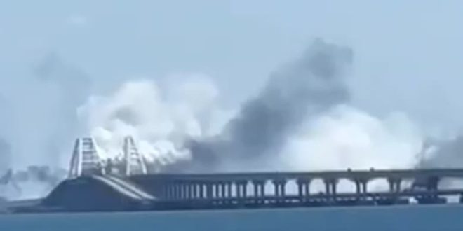 وأظهرت الصور ومقاطع الفيديو التي تم تداولها على منصات التواصل الاجتماعي دخانًا أبيض يتصاعد من الجسر الذي يربط بين البر الرئيسي الروسي وشبه الجزيرة التي أعلنت ضمها من قبل روسيا في عام 2014.