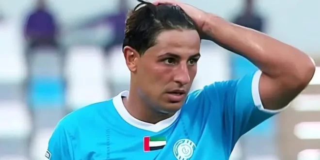 مع مبارة فريقه دبا الفجيرة أمام فريق كلباء ضمن منافسات الدوري الإماراتي، ما