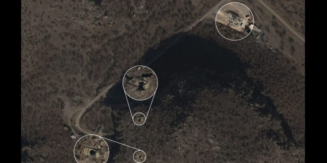 تُظهر صور الأقمار الصناعية عالية الدقة، الملتقطة في 10 فبراير 2026، والتي حللها تنظيم داعش، استمرار إيران في تحصين مداخل الأنفاق في المجمع تحت الأرض المنحوت في جبل بيكاكس بالقرب من نطنز. ويظهر بوضوح وجود خرسانة جديدة عند المدخلين الغربي والشرقي، مما يزيد من الحماية التي قد تساعد في حماية المنشأة من الغارات الجوية المحتملة، إلى جانب الشاحنات ومعدات البناء الأخرى الموجودة في الموقع.