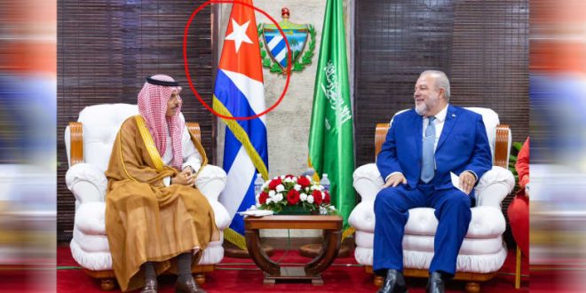 تداول نشطاء على مواقع التواصل الاجتماعي مقطع فيديو وصور لكسر رئيس الوزراء الكوبي، مانويل ماريرو كروز، البروتوكول بدعوة وزير الخارجية السعودي، الأمير فيصل بن فرحان للجلوس إلى جانب العلم الكوبي عوضا عن جانب العلم السعودي.