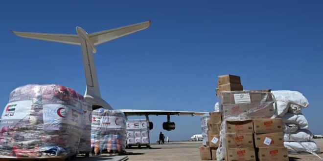 وقال الشامسي إن “الجسر الجوي الإماراتي إلى ليبيا متواصل، في إطار الجهود الإغاثية لدولة الإمارات لدعم ليبيا، للتخفيف من حدة الوضع الإنساني الصعب الذي يعيشه الشعب الليبي جراء ما خلفه الإعصار دانيال”، طبقا للوكالة الإماراتية.