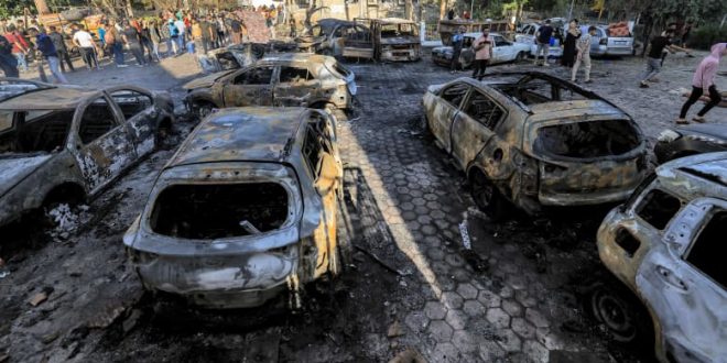 وقُتل المئات، الثلاثاء، جراء الانفجار الذي هز المستشفى الواقع في مدينة غزة والذين كان يأوي آلاف النازحين، وفق ما قاله مسؤولون فلسطينيون.