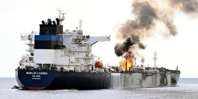 وقالت القيادة المركزية في بيان: “قام الحوثيون المدعومين من إيران بالأمس باستهداف سفينة ام/ڤي مارلين لواندا التي ترفع علم جزر مارشال والعائدة ملكيتها الى برمودا، بصاروخ باليستي مضاد للسفن في خليج عدن. تقوم سفينة مارلين لواندا بنقل شحنة من مادة النفثا للاستخدام التجاري، وهو خليط هيدروجيني سائل شديد الاشتعال..”