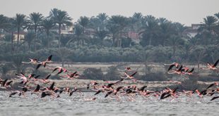 مصور يوثق مشاهد حالمة لطيور الفلامنجو في بحيرة قارون بمصر
